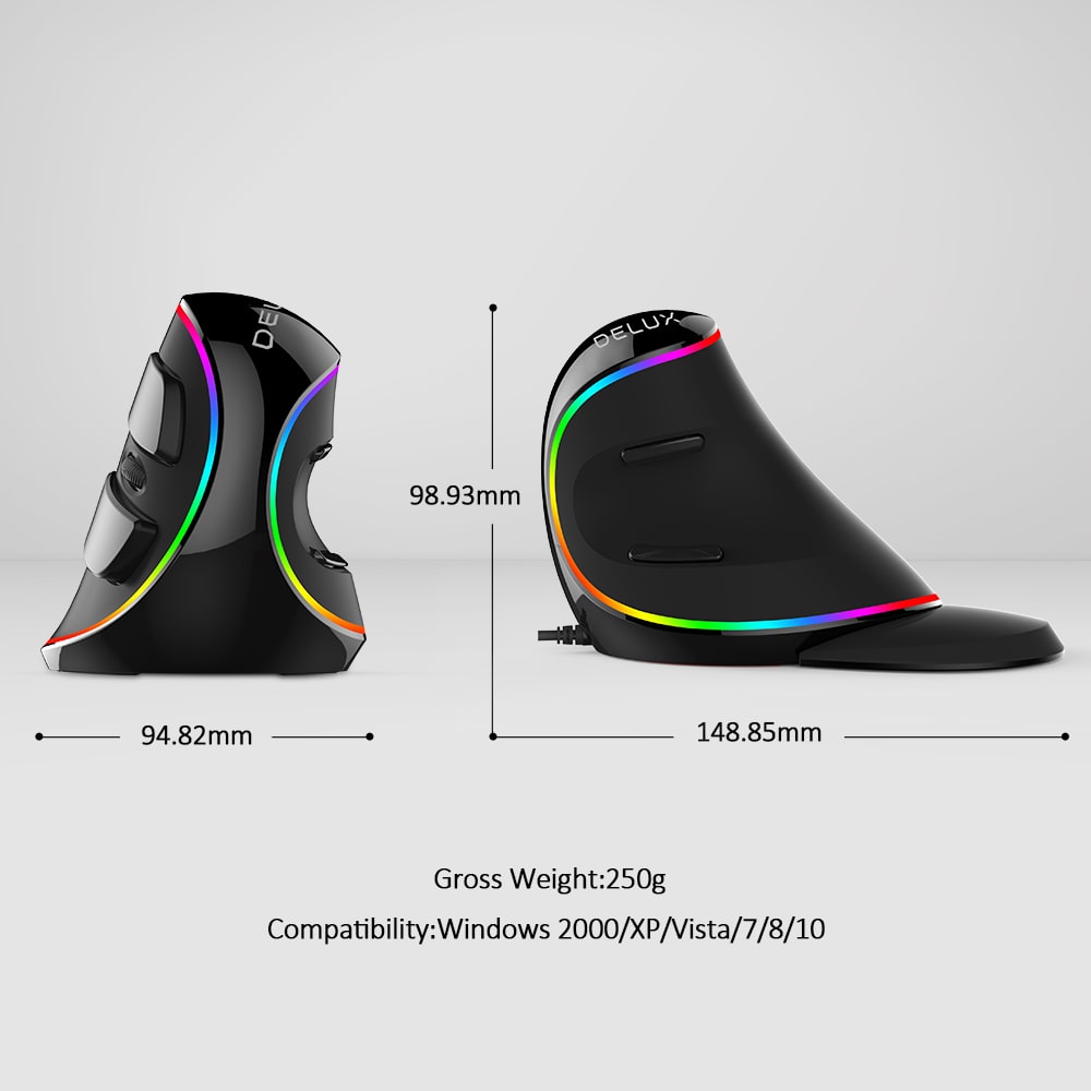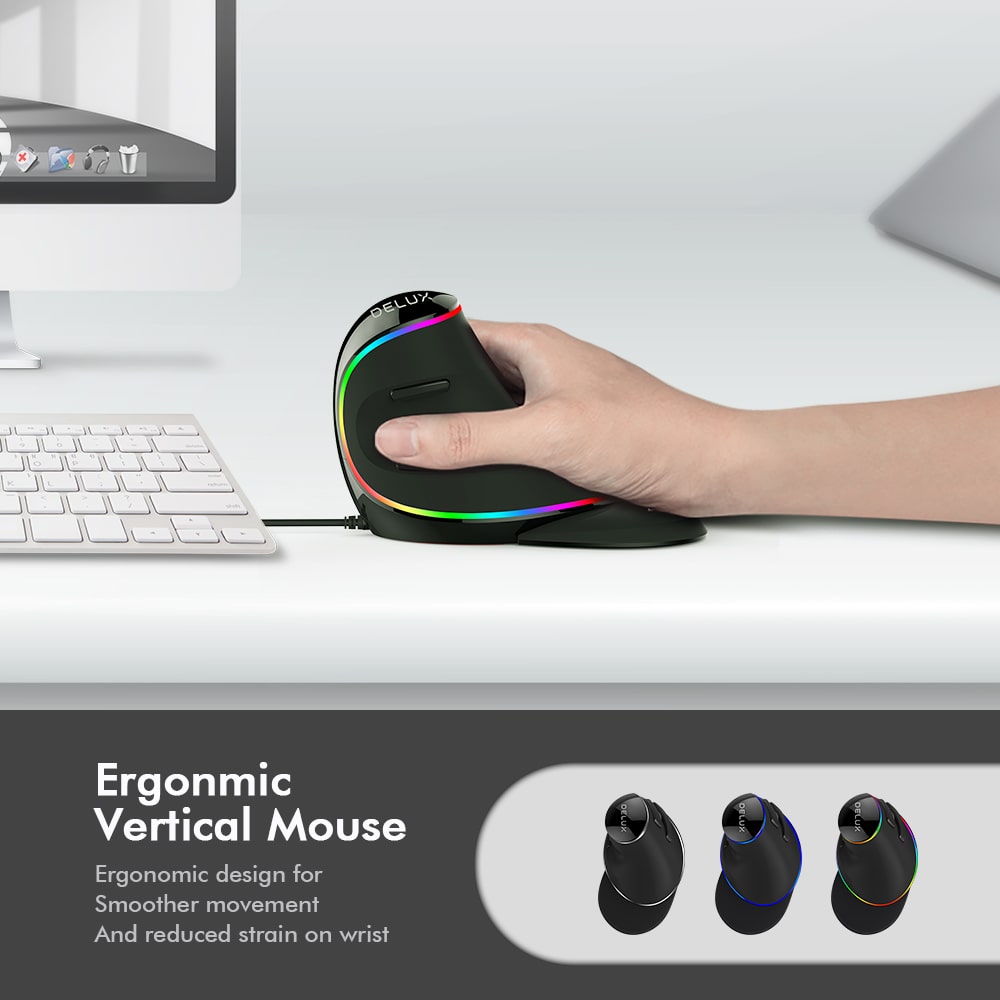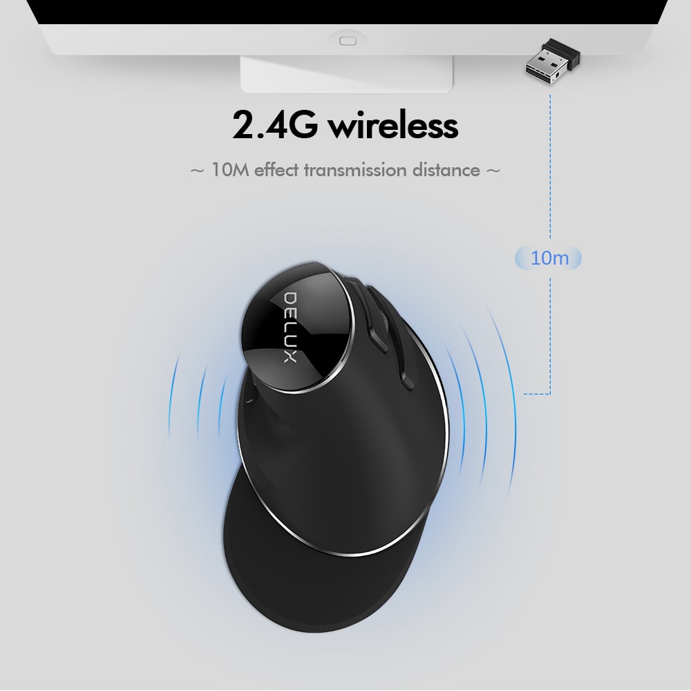 A unique vertical mouse with special volute bionic design alleviates arm discomfort and stiffness.